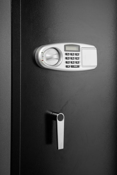 - Serrure digitale à combinaison avec clef de secours (derrière le logement des piles)