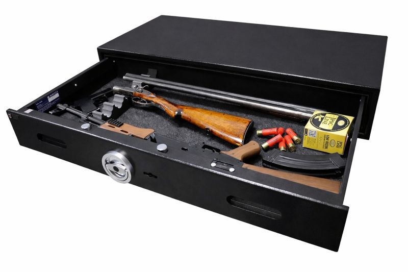 Coffre type tiroir extra-plat pour armes longues et armes de poings et(ou) munitions
