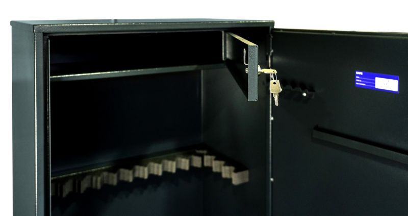 - Serrure de sécurité (2 clés porte et 2 clés coffres intérieurs